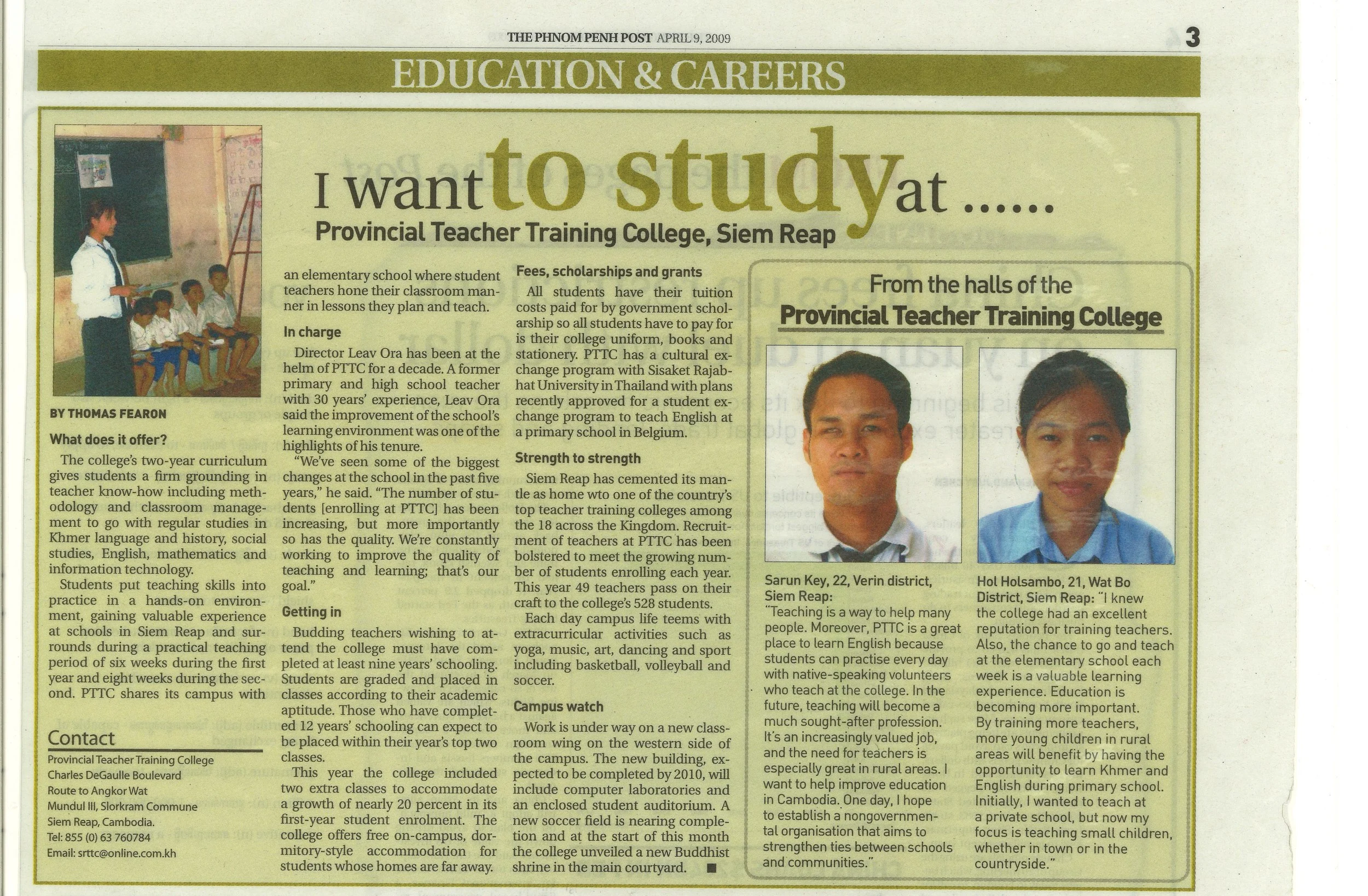 Siem Reap has cemented its mantle as home wto one of the country's top teacher training colleges among the 18 across the Kingdom. Recruitment of teachers at PTTC has been bolstered to meet the growing number of students enrolling each year. This year 49 teachers pass on their craft to the college's 528 students.
